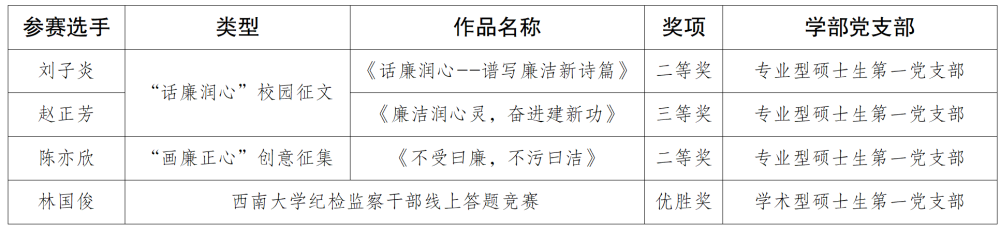 为深入学习贯彻习近平新时代中国特色社会主义思想和党的二十大精神,推动党纪学习教育走深走实,进一步夯实清正廉洁思想根基、厚植廉洁奉公文化基础、培养廉洁自律道德操守、弘扬崇廉拒腐社会风尚,根据党中央《关于加强新时代廉洁文化建设的意见》精神和《教育部办公厅关于举办第九届高校廉洁教育系列活动的通知》要求,学校在全校范围开展廉洁教育系列活动。活动开展以来,学部纪委高度重视,积极发动、精心组织各党支部开展廉洁教育主题活动。经专家评审,学部学子荣获“话廉润心”校园征文类二等奖一项、三等奖一项,“画廉正心”创意征集类二等奖一项,必赢776net纪检监察干部线上答题竞赛优胜奖一项。