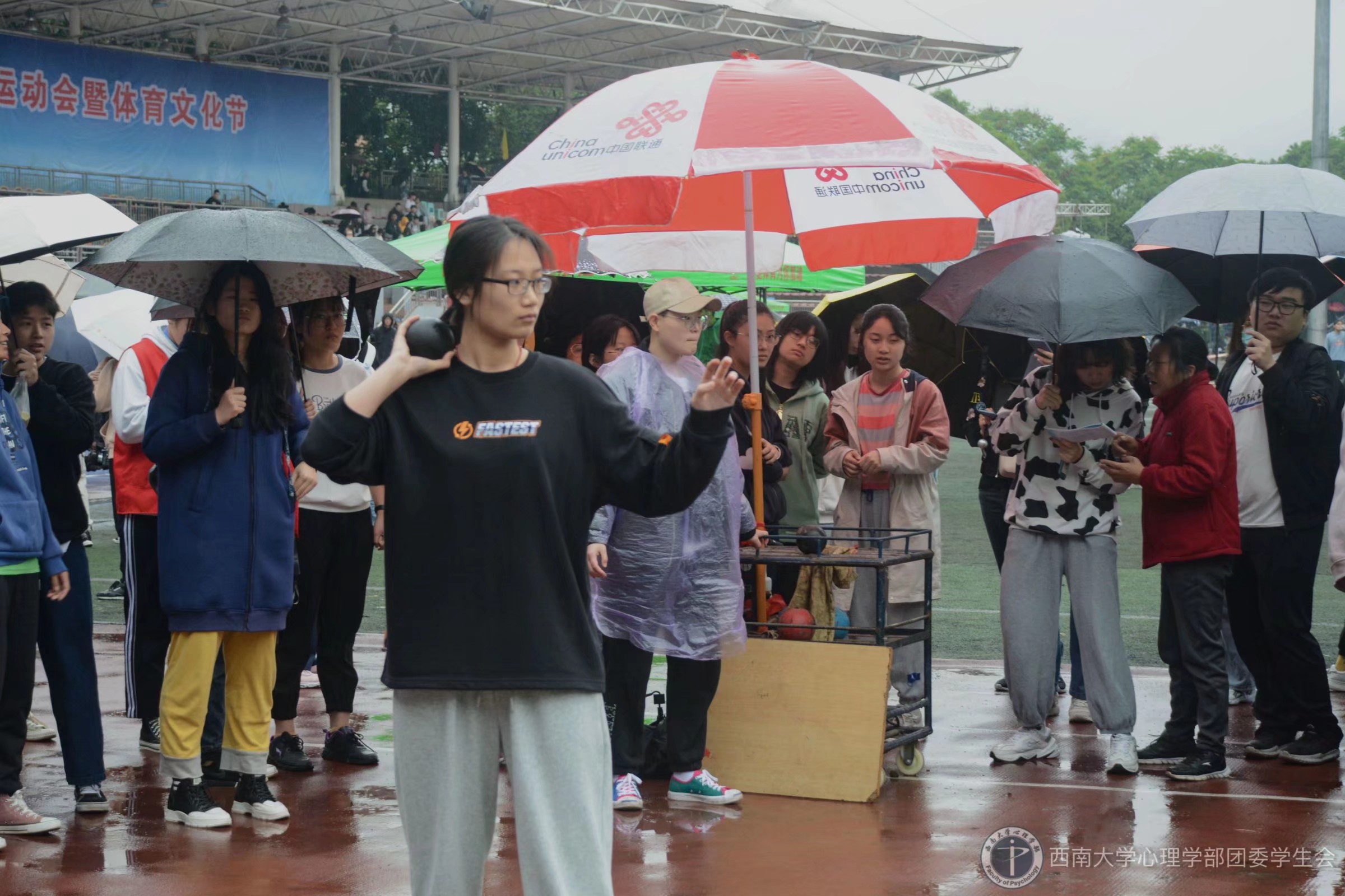 4月16日,雨天增加了比赛的难度,但同学们仍热情不减。长跑和短跑项目中,同学们栉风沐雨,步履矫健;跳高和跳远项目中,同学们奔跑、冲刺、起跳、落地,一气呵成;铅球比赛中,同学们奋力投掷,引来观众席阵阵欢呼。