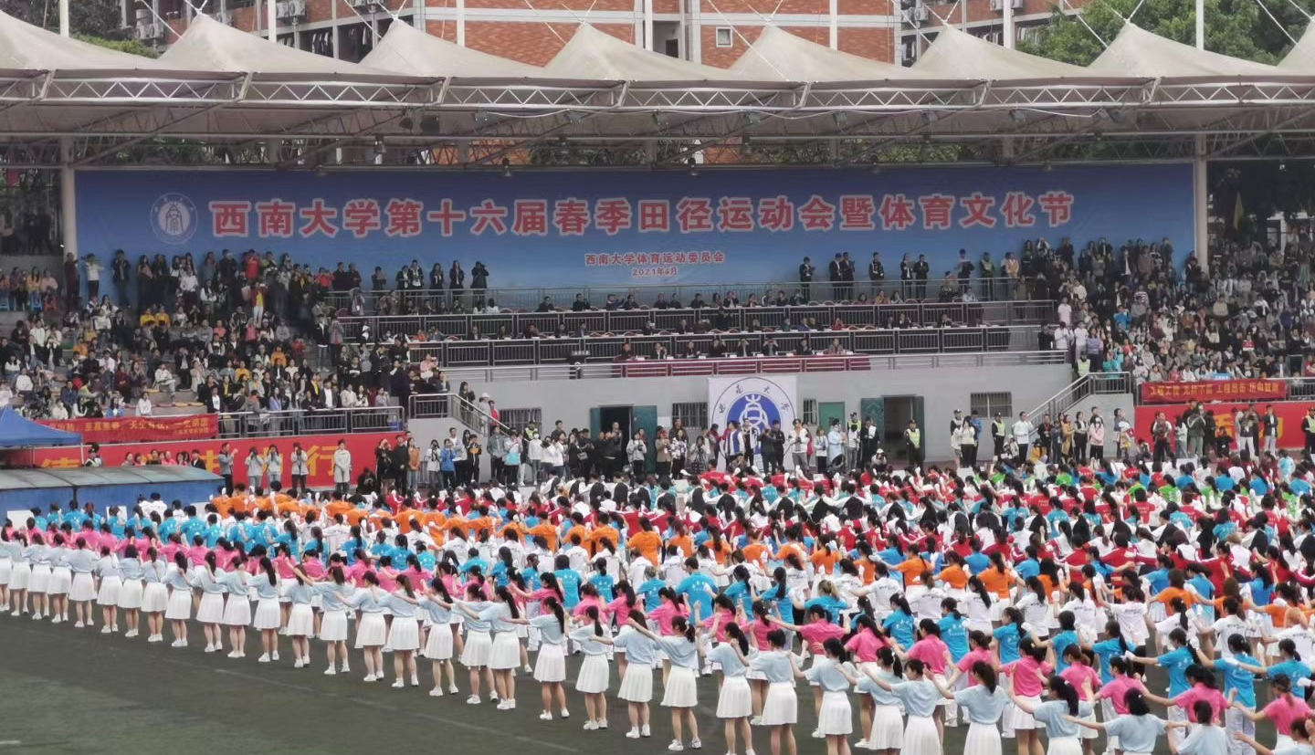 律动青春,心动未来,享受乐趣,增强体质,健全人格,锤炼意志。衷心希望同学们树立“反哺于西南,服务于国家”的意识,承袭“穷则独善其身,达则兼济天下”的胸襟,以强大的内心、积极的姿态、良好的心态、健康的心理去迎接人生途中的一切挑战和压力,脚踏实地,一往无前。