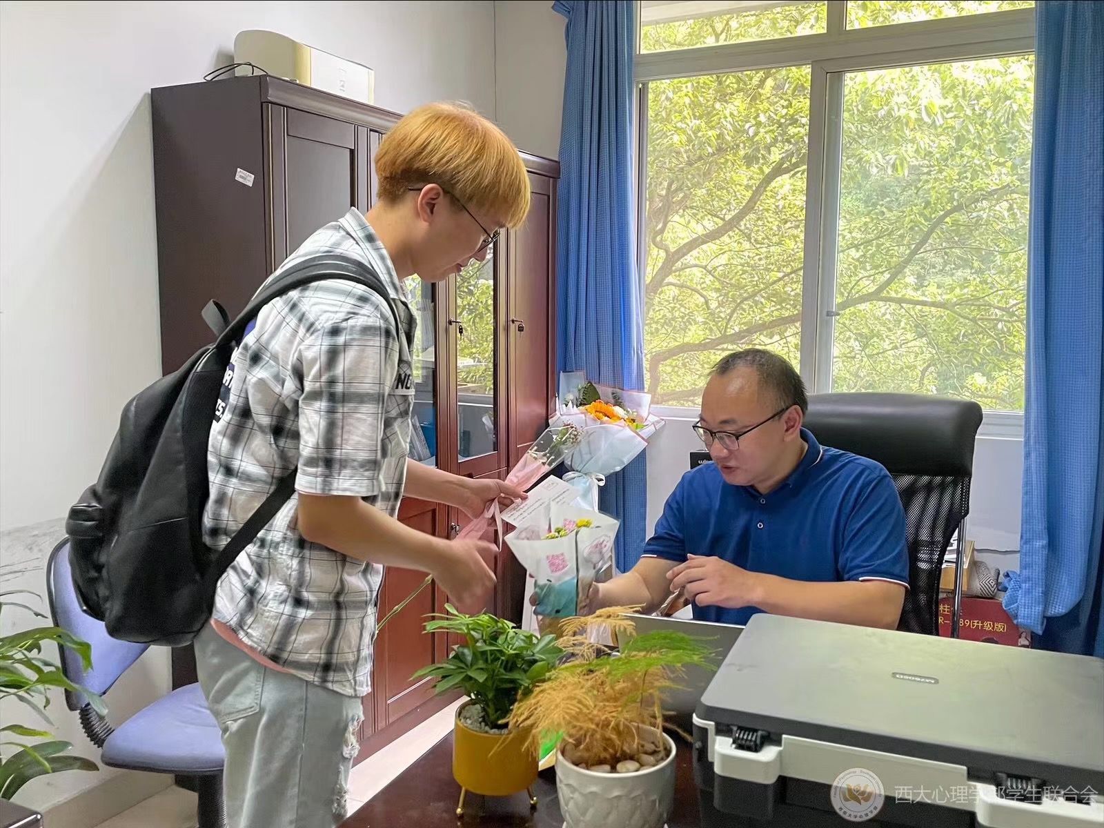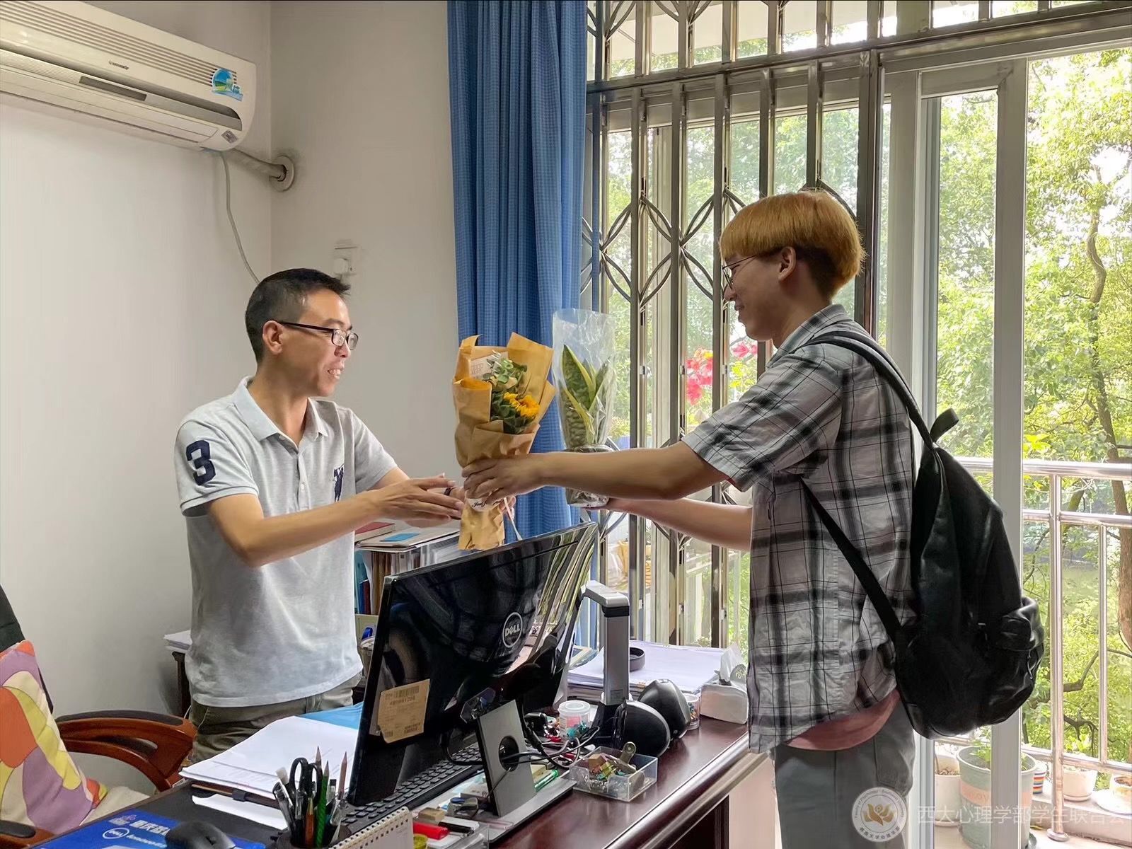 主席团成员和干部们先后来到了陈红部长以及党委书记黄泽文老师、党委副书记陈诚老师、团委书记陈富国老师等学部领导以及各年级辅导员、各班班主任、办公室行政老师及专业相关老师的办公室,代表必赢776net全体学生表达了对老师们的祝福,并送出了教师节礼物。