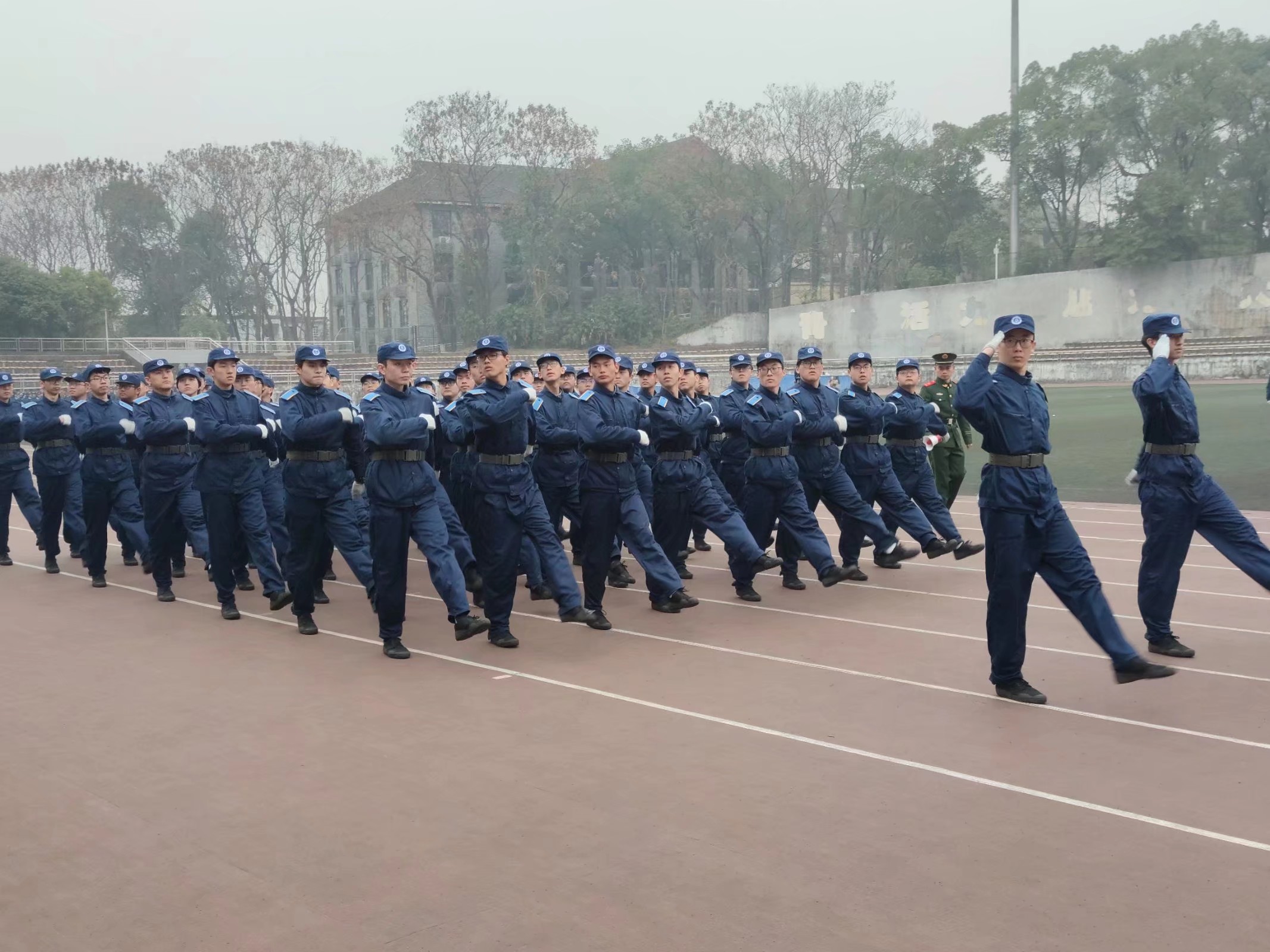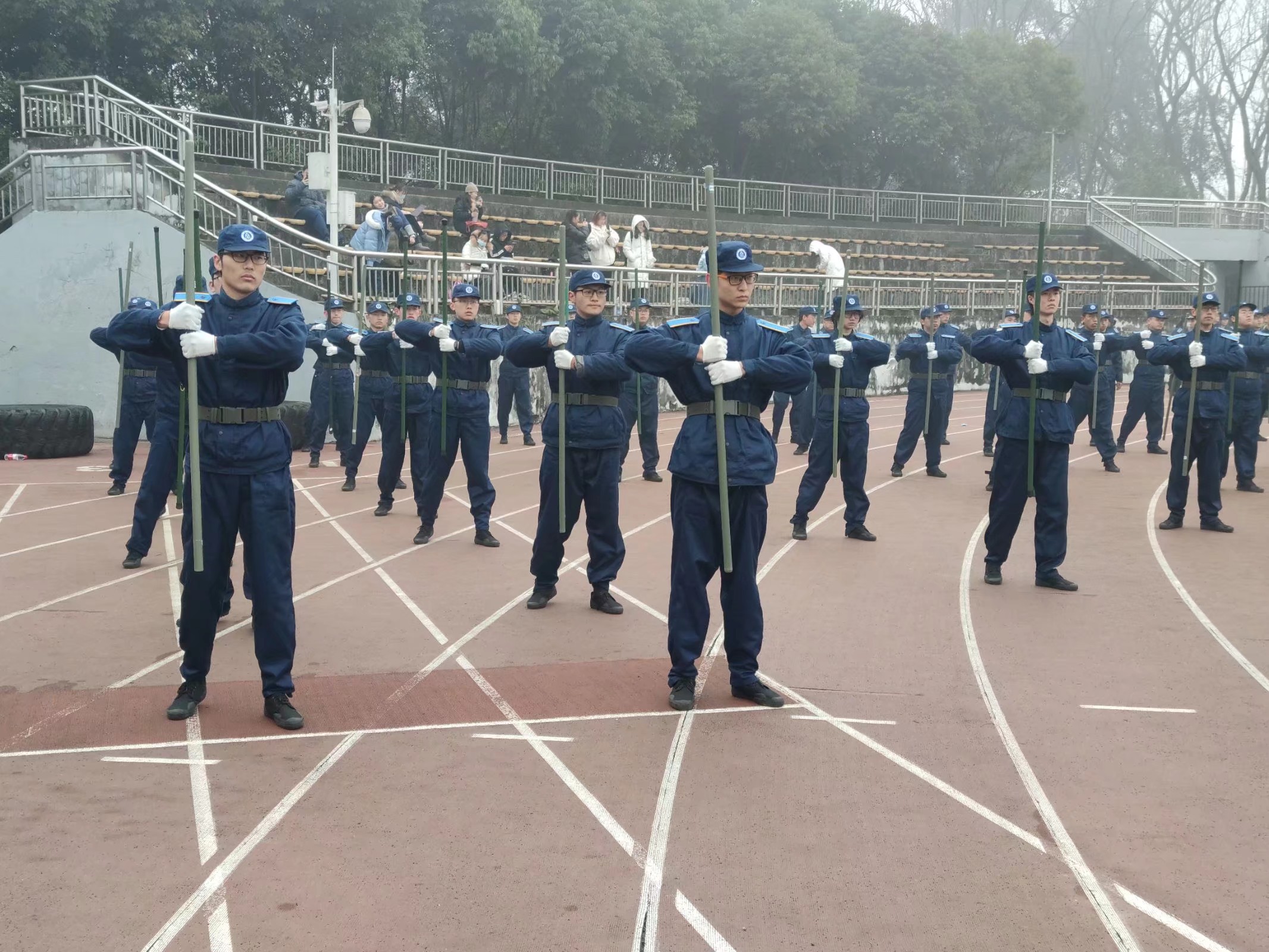 自2021年1月20日起,本次军训分成不同板块训练。应急棍组由男生组成,他们手持长棍,竭力学习,一招一式刚劲有力;心理健康操组伴着轻松欢快的音乐进行动作训练,青春活泼,灵动可爱;分列式组进行正步、齐步、跑步、踏步等练习,他们步伐整齐,斗志昂扬。休息期间,教官带领同学们唱军歌,演节目,气氛活跃融洽,为艰苦的军训生活添上了轻松愉悦的一笔。