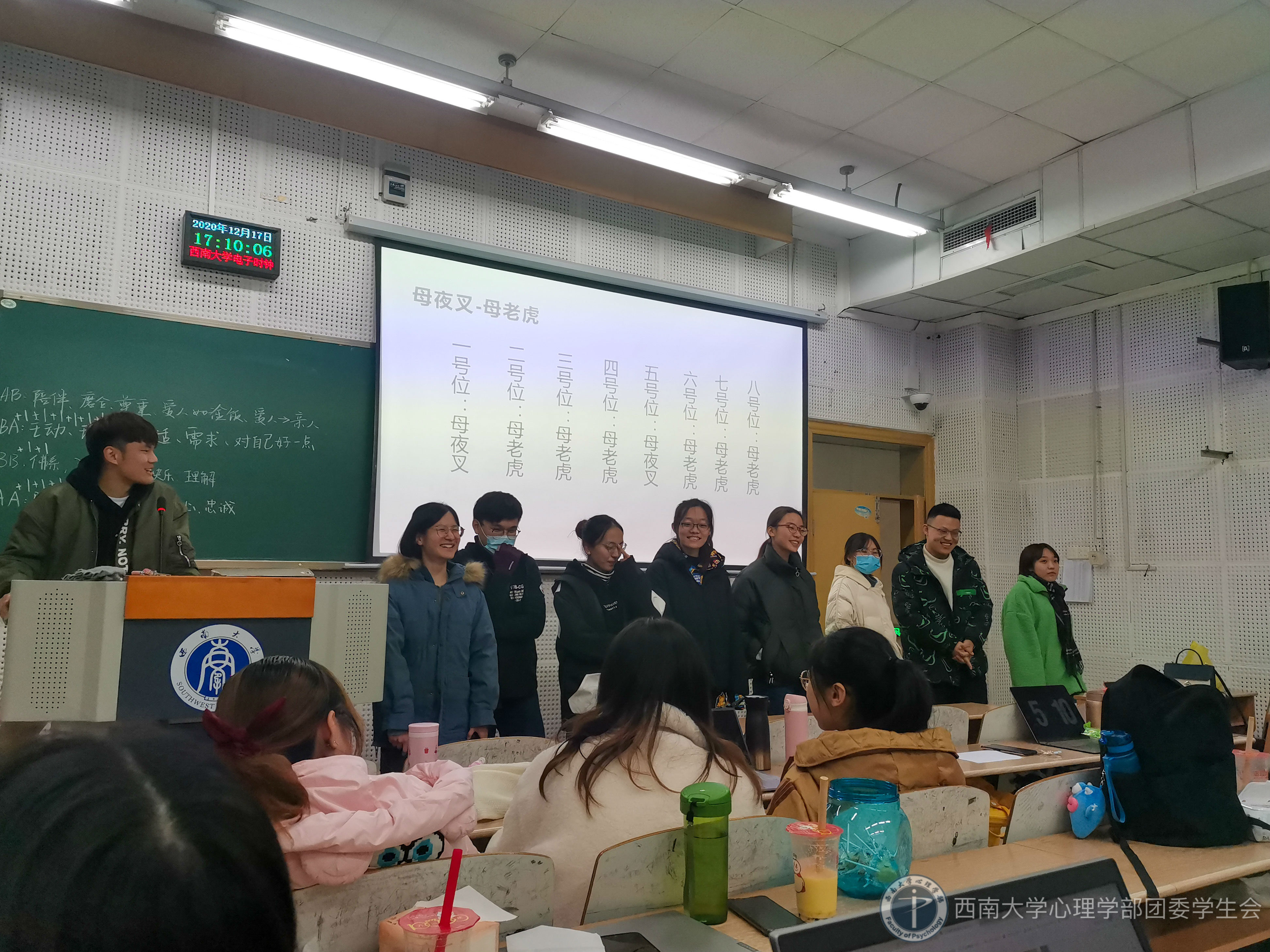 2020年12月17日下午16时,必赢776net必赢776net19级心理学中外2班全体同学齐聚八教612教室,特邀出席的还有19级心理学中外2班班主任杨周老师。为加深同学之间的了解,增进彼此间的友谊,提高班级凝聚力,让各位同学在期末前有一个放松的机会,19级心理学中外2班班委们为大家准备了一次心理团辅与迎新年活动,得到了同学们的一致支持与广泛响应。