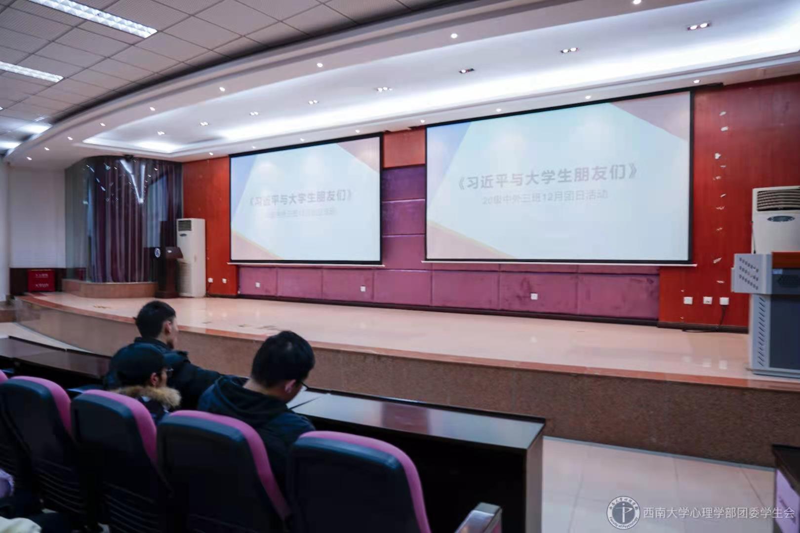 同学们陆续到达并落座后,本次团日活动正式开始。本次活动主要由以下三个环节组成:观看宣传片、集中学习部分选段、班长总结。
