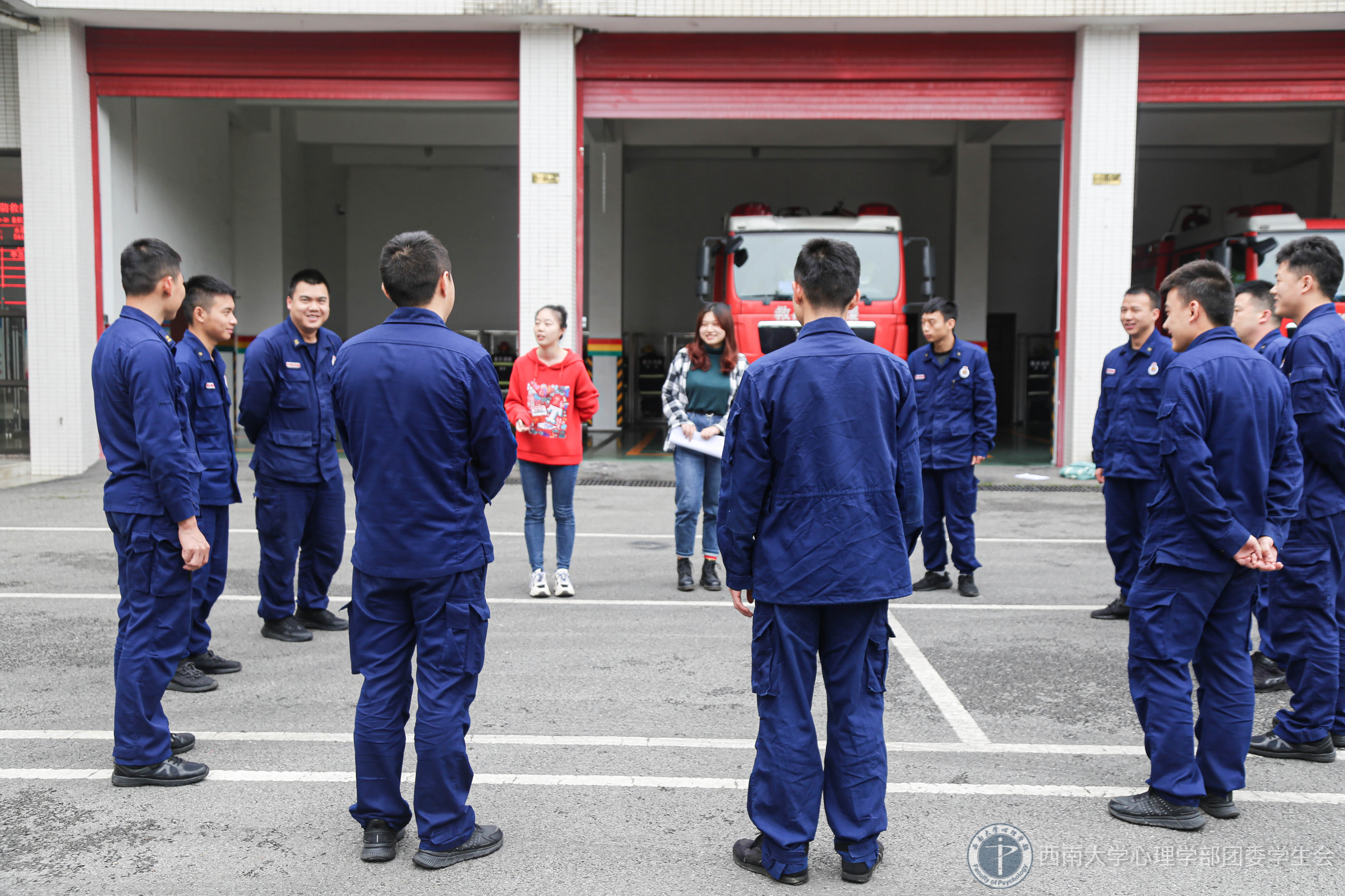 2020年10月30日中午12点50分,必赢776net必赢776net团委学生会阳光爱心队在重庆市南岸区三个消防中队开展了以应对压力为主题的团辅活动。
