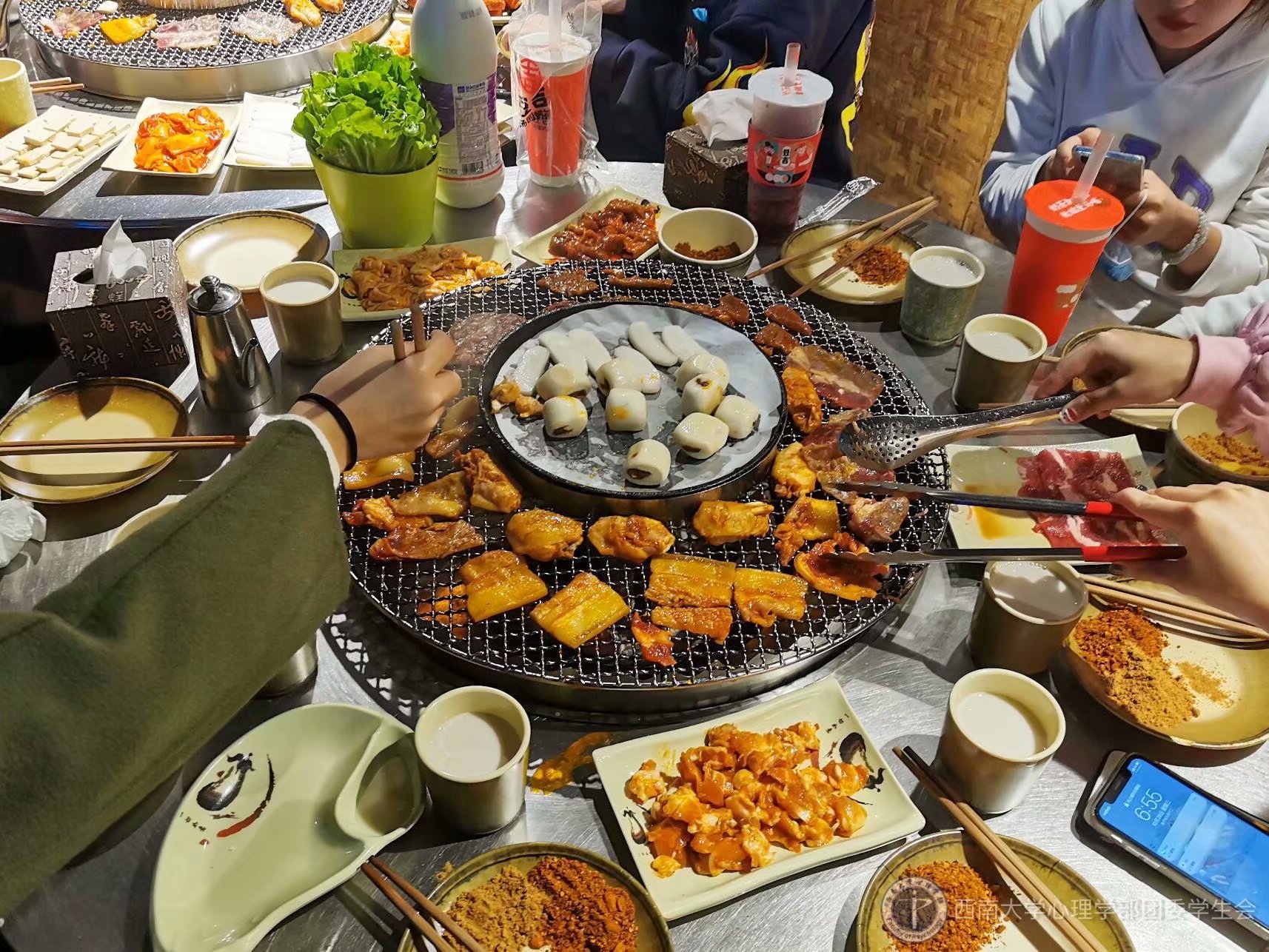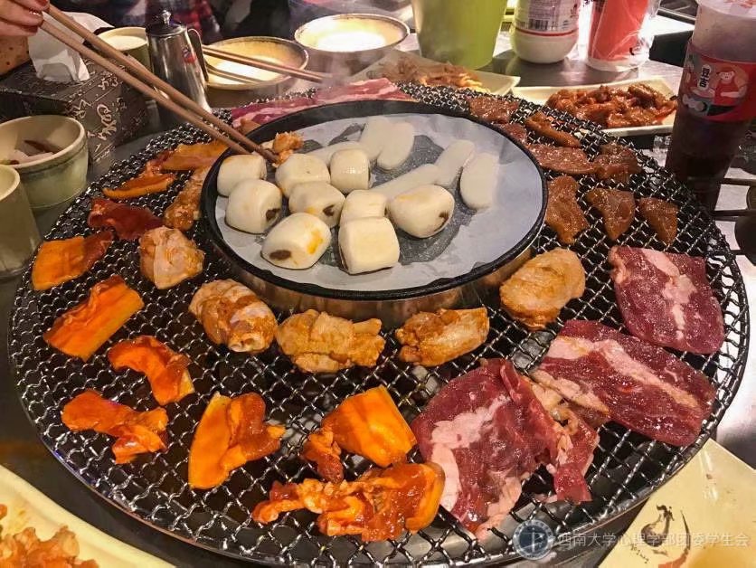 聚餐活动在同学们的欢声笑语中进行。人员到齐落座后,大家举杯庆祝开始聚餐。有些热情的同学积极担任起烤肉之职,每个同学都体验了一把烧烤瘾,大家将自己烤好的肉分给其他同学品尝。这个过程拉近了彼此之间的距离,同学们如同置身于一个大家庭中,气氛融洽和谐。