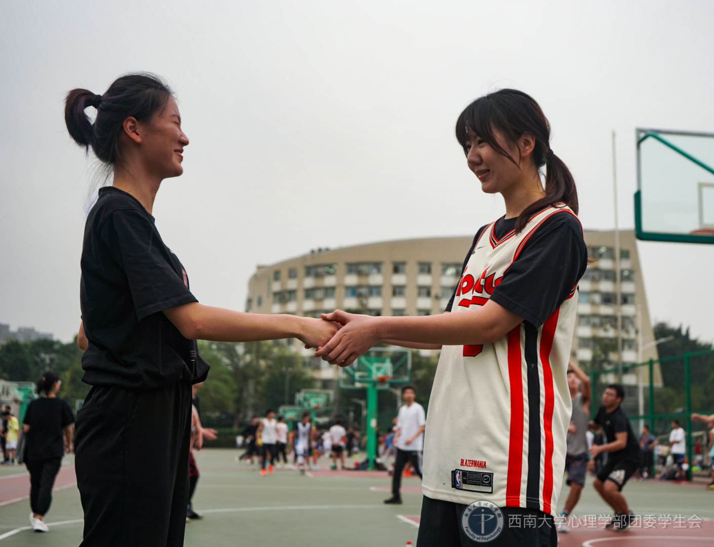 赛后,作为简单的闭幕仪式,新生代表与女篮队队长进行了友好握手。这场比赛虽然没有专业的篮球阵营,但这次比赛中,大家都秉持着友好交流学习的本心,尽自己最大的努力去参与、去竞争,为自己的队伍斩获来之不易的每一分。经过此次篮球比赛,必赢776net新老生间情谊大大加深,配合也更加默契。相信今后,无论是场上挥洒汗水的她们还是场下心怀篮球的你,都会矢志不渝,在篮球的道路上走下去,继续书写自己和篮球的故事。同时,也欢迎所有对篮球感兴趣的你们,开始自己和篮球的故事!