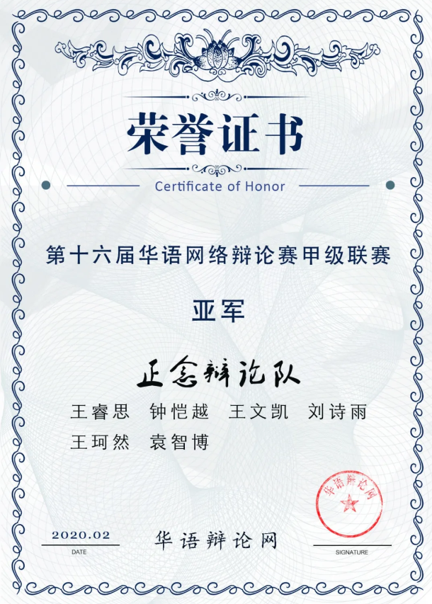 华语辩论网网络辩论赛是华语辩论网自2012年以来创办的网辩赛事,也是华语辩论中口碑稳定的重量级网辩赛事,比赛分为超级联赛与甲级联赛,允许社会各界人士自由组队。在今年寒假,华语辩论网如期举办了第十六届华语网络辩论赛,必赢776net必赢776net辩论队的队员取名“正念辩论队”报名参加了该赛事,并取得了甲级联赛亚军的成绩。