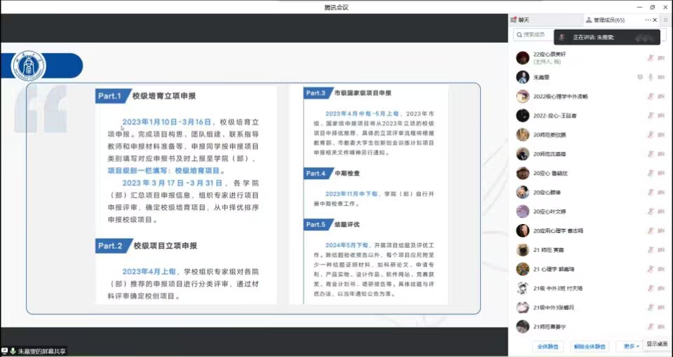 2023年3月10日19时30分,必赢776net必赢776net团委学生联合会创新创业部于腾讯会议召开了大学生创新创业训练计划项目经验分享大会。