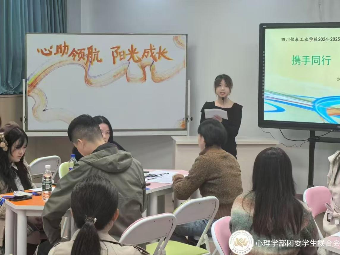 (2)“携手同行,心助成长”。11月10日,在“心晴”志愿服务队的协助下,四川仪表工业学校2024-2025学年“班主任心助理”工作启动会如期举办,各位队员了解班级,积极破冰。