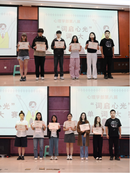 经过一番激烈的竞争,陈张仁杰、王逸凡同学以其卓越的表现斩获一等奖,章伊可、刘奕辰同学荣获二等奖,陈昕怡、杨宛怡同学获得三等奖。他们不仅展现了扎实的单词基础和敏捷的思维能力,更体现了心理学部学子积极向上、好学乐学的精神风貌。