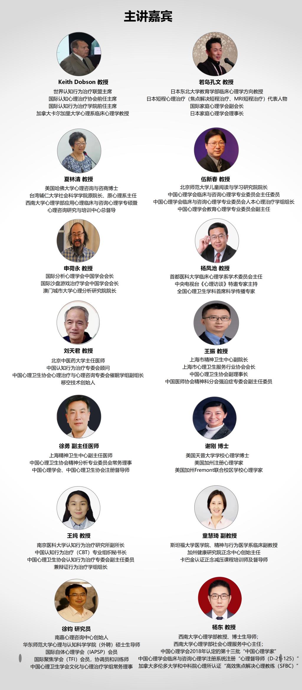 ² 世界认知行为治疗联盟主席Keith Dobson教授、日本家庭心理学会理事长若岛孔文教授、美国哈佛大学心理咨询与咨商博士夏林清教授……二十多位国际、国内临床与咨询心理学领域专家;