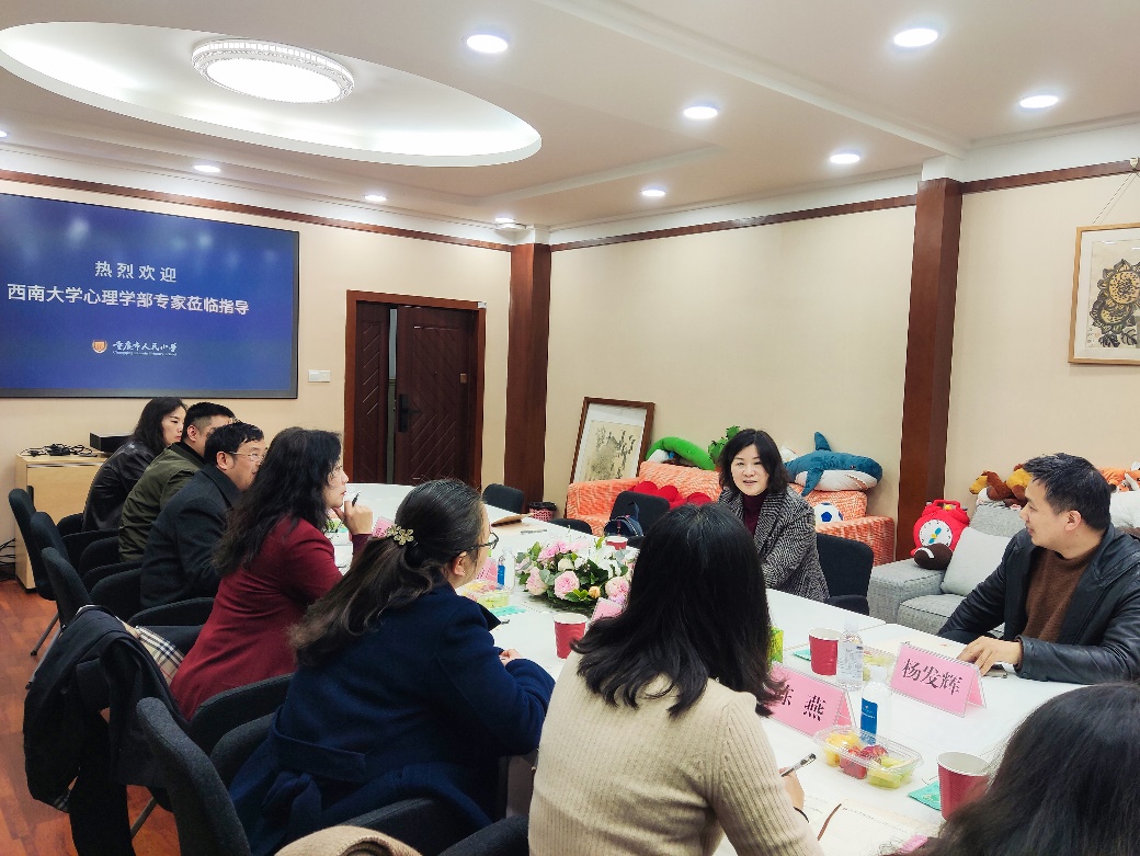 3月4日上午,学部部长陈红一行赴重庆市人民小学开展学校心理健康工作专题交流。重庆市人民小学党委书记、校长杨浪浪,副校长刘欣、赵季秋、刘永红,校长助理陈燕及部分教师代表出席会议。