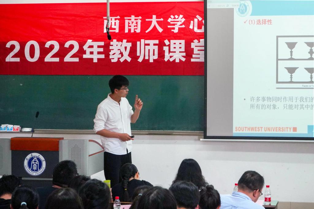 经过前期各系精心组织,细致筹备,推选了6名教师参加比赛。刘永老师的“知觉的四个特性”、张璇老师的“青少年犯罪”、韩鹏飞教授的“心理表象”、张婷副教授的“成为有效团体领导者的条件”、晏妮副教授的“儿童气质”与徐展教授的“相加因素法”用丰富的教学语言、不同的教学风格生动地展示了心理学课堂的魅力和学部教师良好的教学素养。