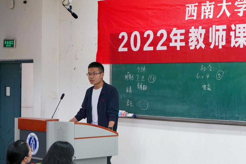 2022年4月22日下午14时30分,“必赢776net必赢776net2022年教师课堂教学比赛”在26教302教室正式举行。本次活动由高雪梅教授、冯廷勇教授、高笑教授、王卫红副教授、范丰慧副教授以及教师教育学院的胡蓉副教授担任专家评委,20名本科生担任学生评委,喻婧教授主持。