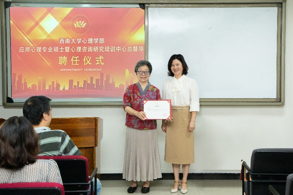 6月10日上午,学部聘任哈佛大学心理咨询与咨商博士、台湾辅仁大学社会科学学院原院长、心理系原主任夏林清教授为应用心理(临床与咨询心理学)专业硕士培训项目暨心理咨询研究与培训中心总督导。聘任仪式由副部长高雪梅教授主持,部长陈红教授感谢夏林清教授大力支持学部临床与咨询心理学学科发展,并为夏林清教授颁发总督导聘书。