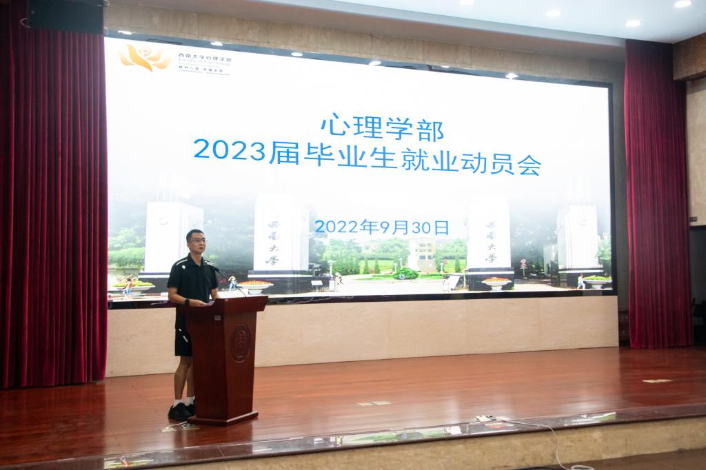 为做好学部2023届毕业生就业工作,引导毕业生树立正确的就业理念,实现毕业生更加充分更高质量就业,9月30日下午,学部在东方红会议厅召开了2023届毕业生就业动员大会。必赢776net党委书记黄泽文、必赢776net部长陈红、必赢776net党委副书记、纪委书记王华敏、必赢776net党委副书记陈诚、本科生辅导员丁书扬、研究生辅导员崔洪瑞以及2023届全体毕业生参加了大会。会议由陈诚副书记主持,因受疫情影响,动员大会采取线上线下相结合的方式举行。