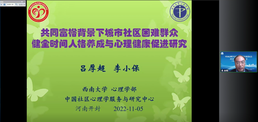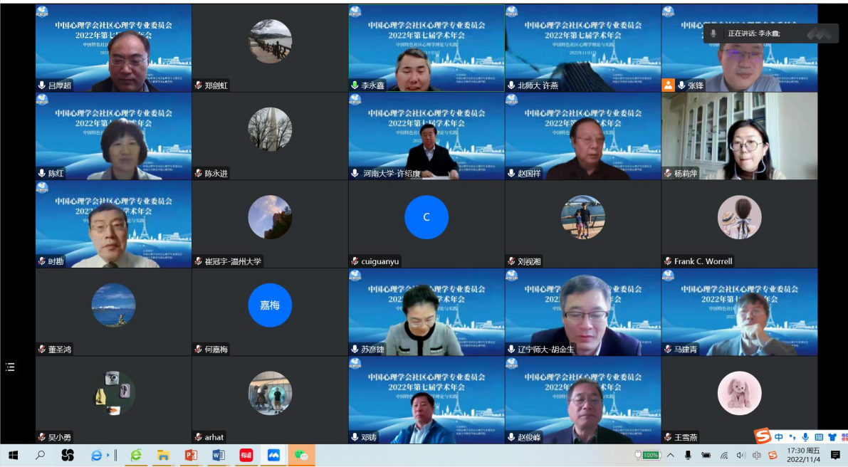 会议期间,还举行了7场分会场专题报告,60多位参会代表报告了近期研究成果,围绕社区心理健康服务体系研究、疫情背景下的社区心理研究、社区心理健康影响因素研究、社区青少年发展与教育研究、社区特殊群体的心理研究、社区心理辅导与干预研究和人格与社会心理研究等问题展开了热烈研讨,青年社区学者和基层社区工作者也围绕感兴趣的社区心理学问题在线上进行了深入交流。