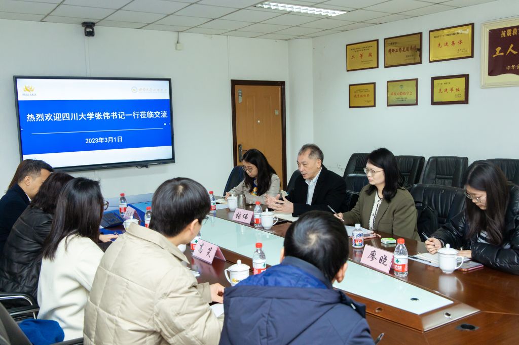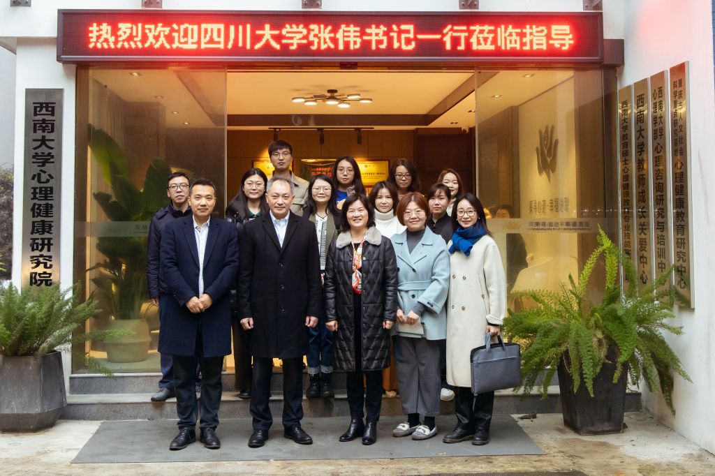 3月1日,四川大学党委副书记张伟与四川大学华西生物医学大数据中心助理研究员辜永红一行莅临学部交流访问。学部部长陈红、心理咨询研究与培训中心主任杨发辉、中心实践主管张新荷、临床与咨询心理学专业硕士项目教务主管吴波、学部青年骨干教师高笑、刘永及学生代表参加了本次活动。