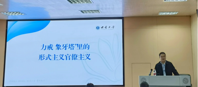 2023年3月13日下午,学部纪委组织全体教职工专题学习“力戒‘象牙塔’里的形式主义官僚主义”。学部党委副书记、纪委书记王华敏同志做辅导报告。王华敏强调形式主义、官僚主义是我们党的大敌、人民的大敌;要从讲政治的高度来审视,从思想和利益根源上来破解形式主义、官僚主义;贯彻落实中央决策部署不能空喊口号、流于形式;让基层干部从文山会海中解脱出来;改进督查检查考核方式方法;必须做好深入扎实的调查研究工作。还结合学部实际情况分析了“象牙塔”里的形式主义、官僚主义的常见现象。