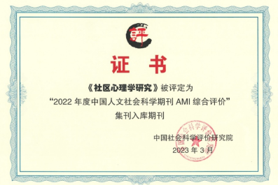 近日,中国社会科学评价研究院发布《中国人文社会科学学术集刊AMI综合评价报告(2022)》,《社区心理学研究》被评为入库集刊。