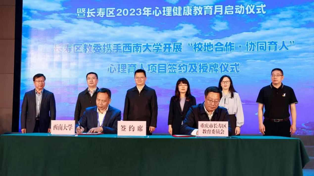 本次签约授牌共建项目是在“成渝地区双城经济圈教育协同发展行动计划”的背景下,在教育双核引领发展、促进毗临地区教育协同发展、推进优质教育资源共建共享等思想的引领下开展的。旨在发挥学部专业、学科和人才优势,为长寿区中小学提供优质心理健康教育资源,推进优质心理大数据平台开发、共享和利用,推动心理危机预警监测的共商共建,促进该地区心理健康教育长足发展。同时,与长寿区教委在心理健康教育等领域开展全方位友好合作,着力将长寿区打造成区域心理健康教育校地合作示范区。