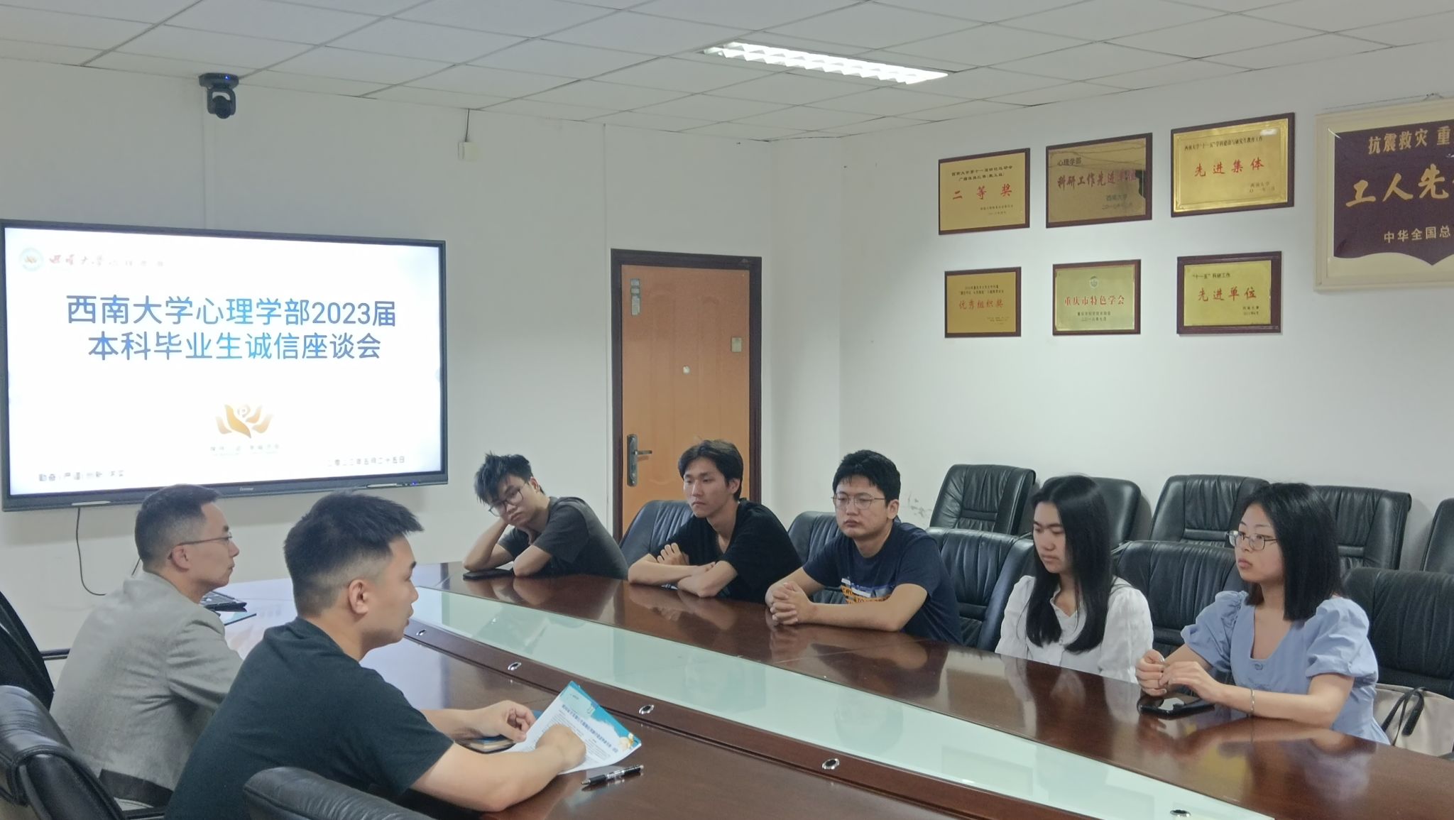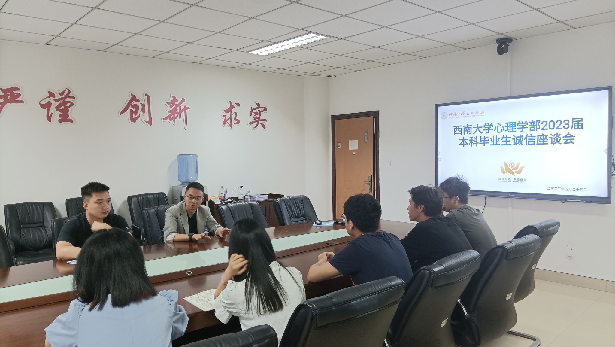 为进一步贯彻党的二十大精神,落实立德树人根本任务,大力弘扬诚信文化,培育和践行社会主义核心价值观,2023年5月25日上午,必赢776net在202会议室召开了2023届本科毕业生诚信座谈会,学部党委副书记陈诚和获得助学贷款的本科毕业生参会,会议由辅导员丁书扬主持。