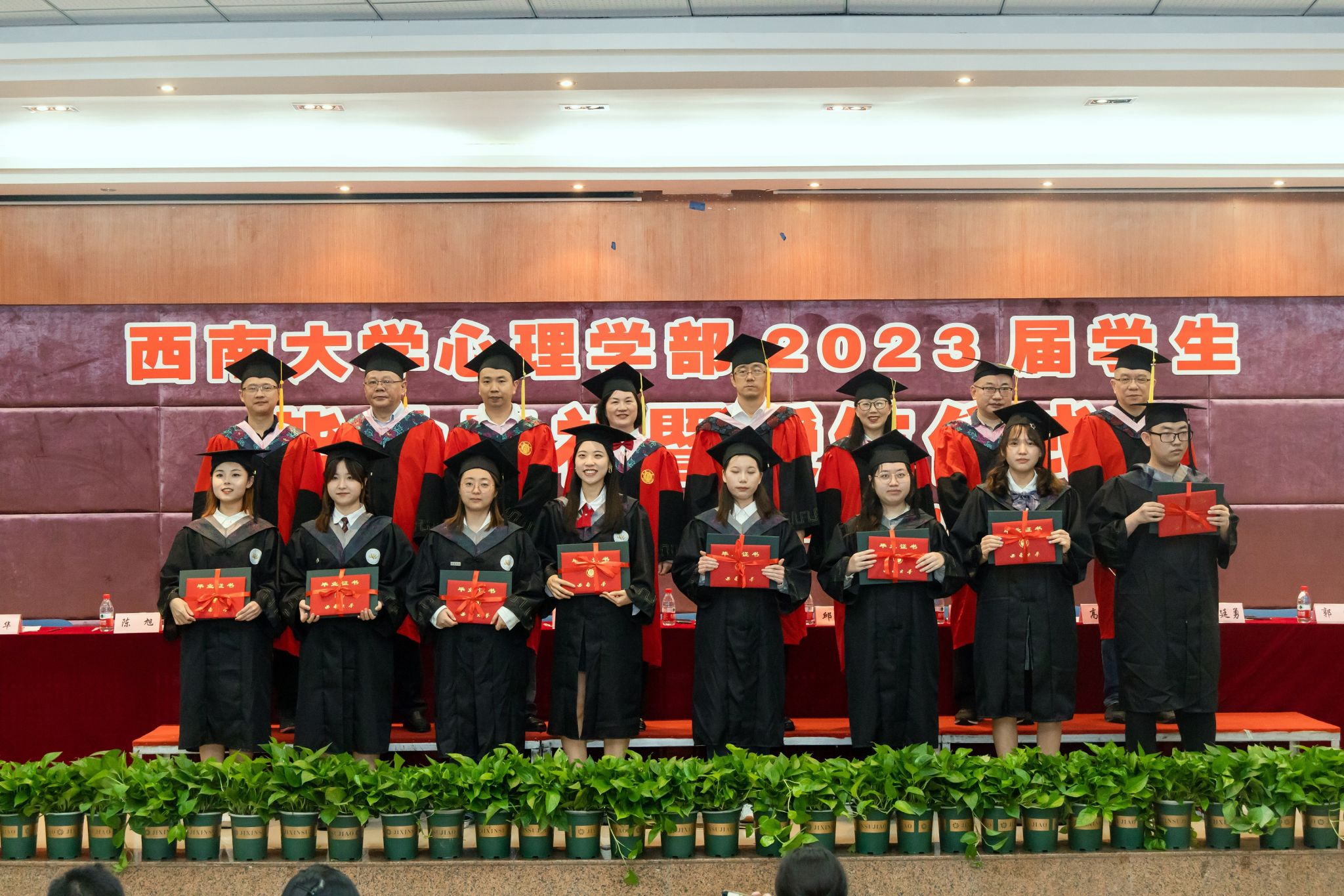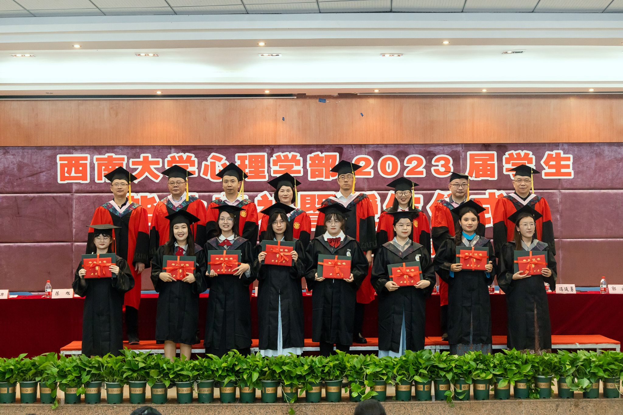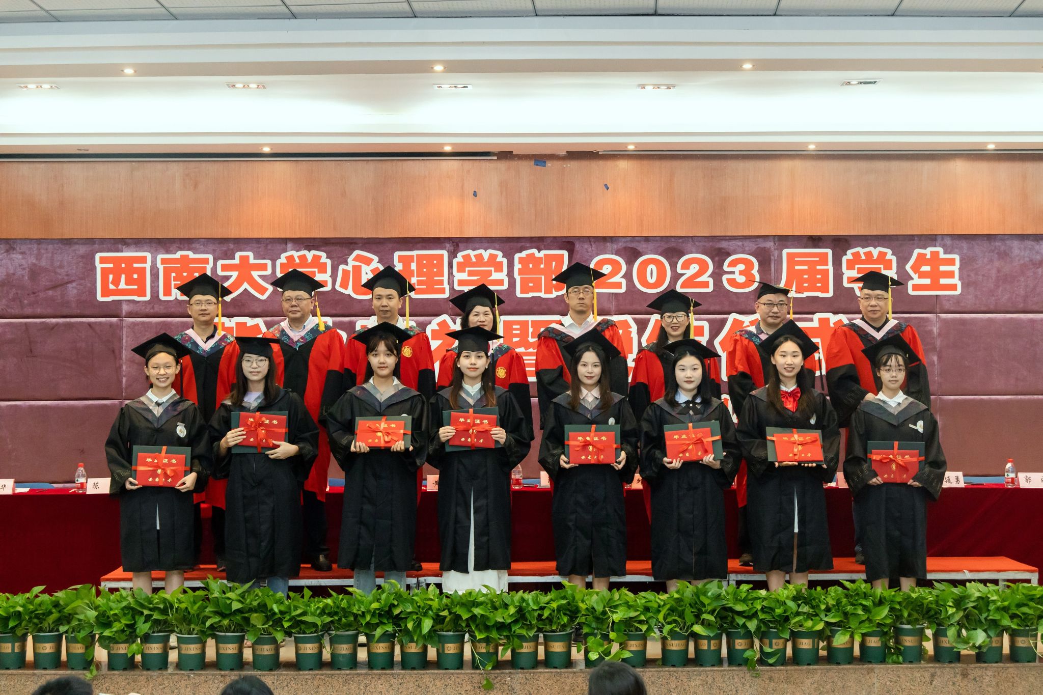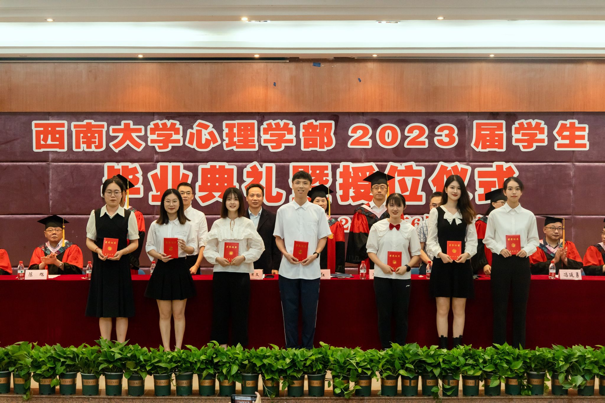 学部学术委员会委员们为学士毕业生颁发双证