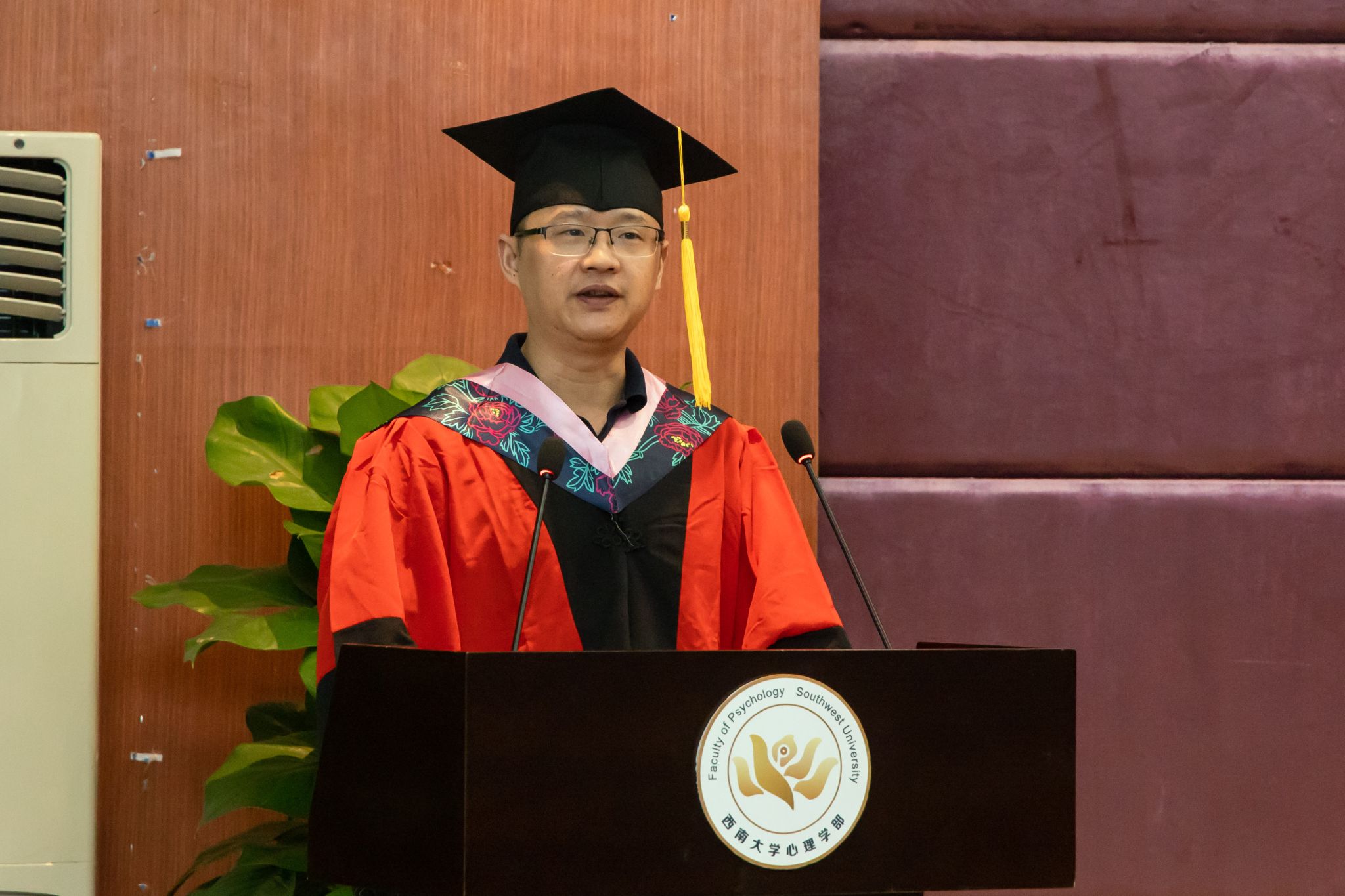 教师代表何清华教授寄语毕业生。何教授分享了他对于人生和心理学的深刻感悟,作为给毕业生践行的礼物。首先,他希望大家以毕业为起点,勇于尝试,探寻心迹;其次,他建议大家要以前人为榜样,心存敬畏,幸福进取;同时,他叮嘱同学们要以母校为后盾,创精彩人生,养健全人格;最后,何教授借黄希庭先生对大家的寄语“探寻心迹,理解人生,点燃心灵真善美”作为结语,希望大家能够牢记先生的谆谆教诲,在未来的道路上自信自强、守正创新,勇毅前行。