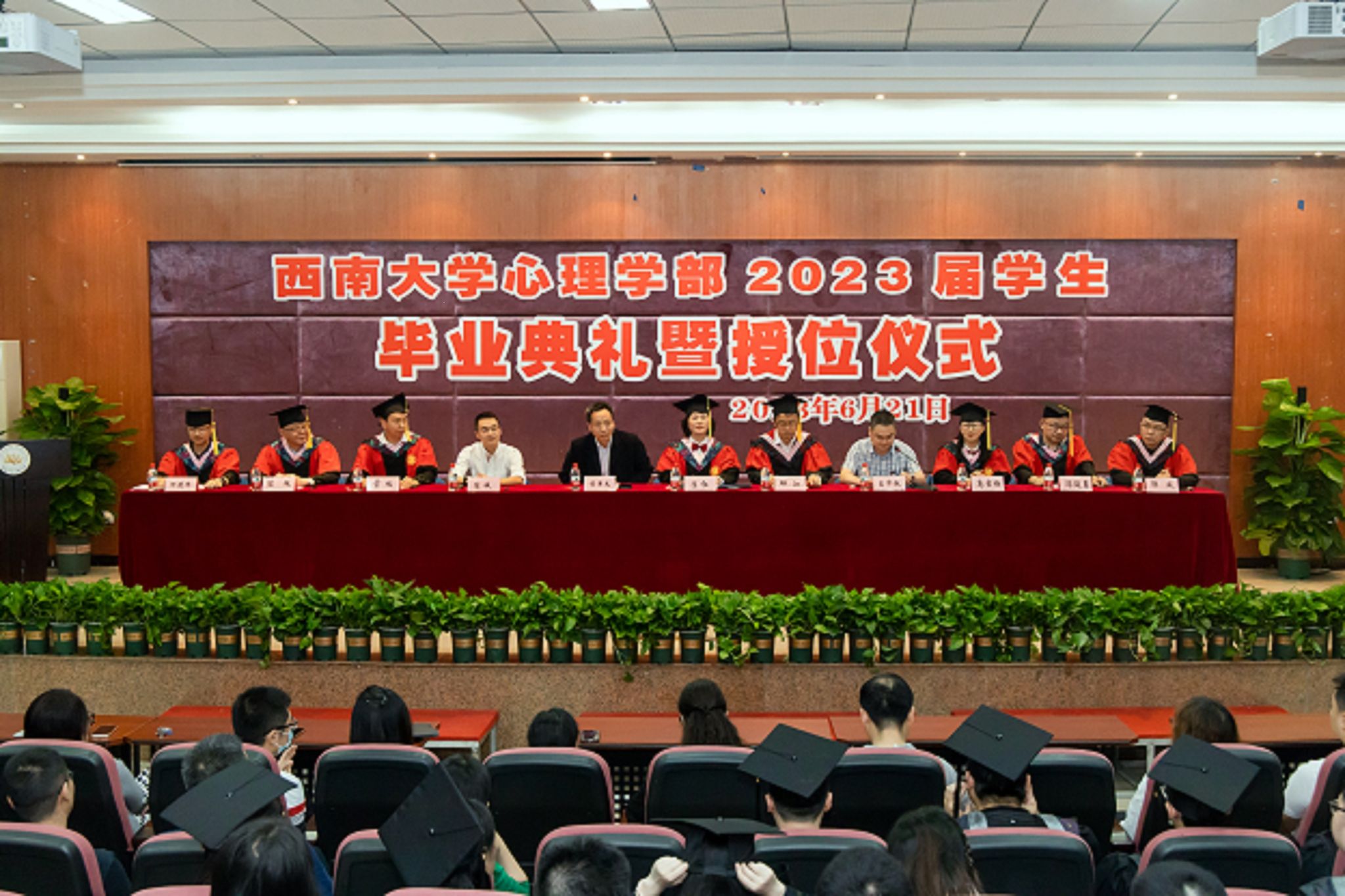 2023年6月21日下午3点,必赢776net必赢776net2023届学生毕业典礼暨授位仪式于学部415报告厅隆重举行。学部部长、学术委员会主席陈红,党委书记黄泽文,学校研究生院院长、学部学术委员会委员邱江,学部党委副书记王华敏、陈诚,副部长高雪梅、雷旭、冯廷勇,以及学部学术委员会委员陈旭、郭成、何清华出席典礼并在主席台就坐,与学部教职工、2023届全体毕业生、低年级学生代表以及毕业生亲属代表共同见证这一难忘时刻。典礼由学部党委副书记、纪委书记王华敏主持。