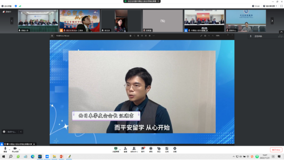 纪念仪式上,参会人员首先共同观看了“平安留学,从心开始”项目周年回顾视频。视频展示了一年来精彩“心”讲座片段、精美“心”格言海报以及老师们的“心”寄语和留学生在一年期间收获到一系列心理健康关爱的“心”感受。老师们殷切的寄语表达了对留学生厚重的关心与支持,每一位参会人员都为之动容。项目的成功离不开各位领导老师的关心与关爱,江湘吉代表西日本地区的中国留学生对一年来为项目付出辛劳的领导老师表达诚挚的感谢。