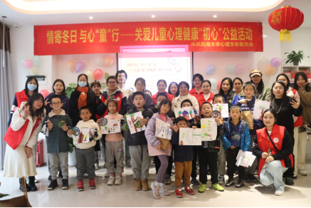 为呵护儿童心理健康,助力健康中国建设,2023年12月2日下午,学部党委组织学生赴北碚区未成年人救助保护中心,开展“情寄冬日,与心‘童’行”关爱儿童心理健康“初心”公益活动。学部党委组织员熊丹带领“心+”红色空间站成员、入党积极分子培训班学员及各支部党员代表,为近20名儿童提供心理健康志愿服务。