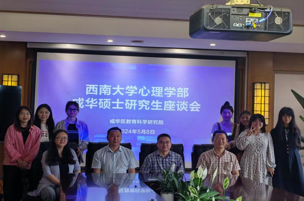 5月8日下午,为了解成都市成华实践基地硕士生实习情况,调研督导研究生联合培养实践基地,学部党委副书记、纪委书记王华敏教授赴成都市成华区教育科学研究院走访调研,学部博士生导师刘衍玲教授陪同。成华区教育科学研究院院长李春歌、成华区教育科学研究院德育心理研究所所长李翔及必赢776net7位硕士研究生出席座谈会。