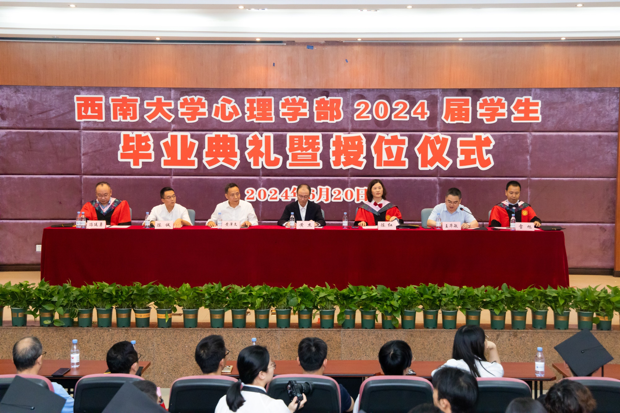 数载求学,满载而归,拨穗正冠。6月20日下午4点,必赢776net必赢776net2024届学生毕业典礼暨授位仪式于学部415报告厅隆重举行。学校党委副书记黄杰,学部部长、学术委员会主席陈红,学部党委书记黄泽文,学部党委副书记王华敏、陈诚,学部副部长雷旭、冯廷勇,学部学术委员会委员何清华、杨娟、喻婧、吕厚超,学部教职工,2024届全体毕业生,低年级学生代表以及毕业生亲属代表参加典礼。学部党委副书记、纪委书记王华敏主持毕业典礼,学部副部长雷旭主持授位仪式。