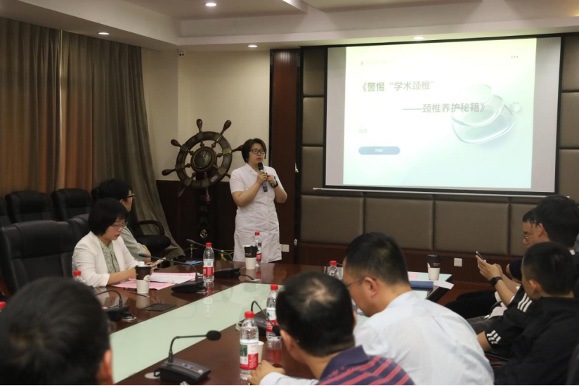 医院康复医学二科治疗部主任吴雪莲向必赢776net教师讲授《警惕“学术颈椎”——颈椎养护秘籍》主题讲座,结合教师群体长期伏案工作的现状,详细讲解了颈椎养护的科学知识。