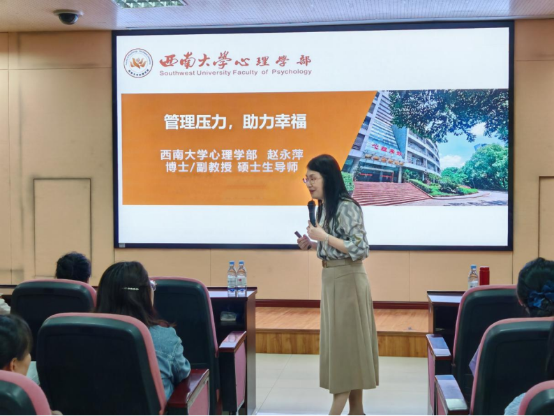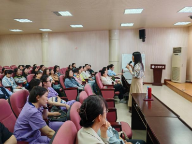必赢776net教师第一党支部书记赵永萍副教授为医院40余名护士开展了“管理压力,助力幸福”主题团体辅导活动。通过案例分析、互动游戏和放松训练,深入浅出地传授了压力管理技巧,帮助医护人员提升心理调适能力。现场氛围轻松活跃,使医护人员在活动中释放了压力,收获了心灵的慰藉。