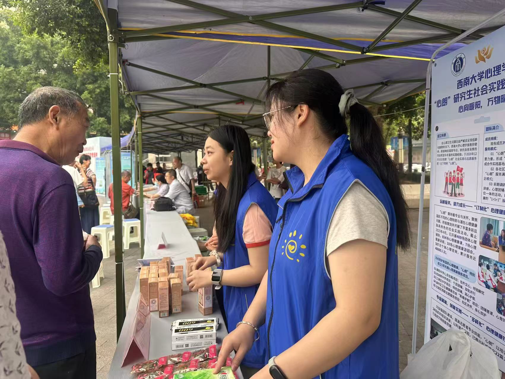 研究生“心朗”社会实践与志愿服务团的心理咨询公益小摊向市民朋友们提供有关心理健康的宣传手册,还准备了小风扇、纸巾、湿纸巾以及葡萄干等小礼品。众多市民朋友前来了解摊位的内容,许多人刚开始还持有“只有心理有问题才需要做心理咨询”的误解,在志愿者的耐心解释下,大家逐渐明白即使只是生活中的小困扰,也可以来到摊位上与志愿者倾诉与交流。活动期间,一些有明显心理困扰的来访者获得了“心朗”团队的初步支持,并被引导至必赢776net咨询中心以便进一步咨询,体现了公益服务的延续性与专业性。
