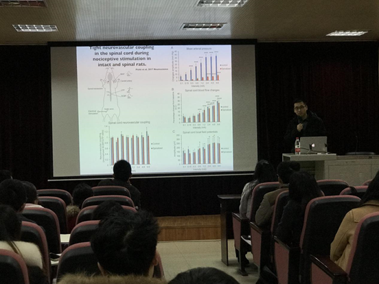 2018年1月12日在必赢776net213教室,中国科学院心理研究所孔亚卓研究员来访我部,做了一场“痛觉下行调制系统:从大脑皮层到皮层下”的精彩讲座。本次讲座由学部邱江教授主持,雷旭,杨娟,高笑教授等全院百余名师生参加了此次学术报告。