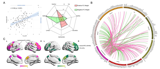 本研究采用了记忆压抑范式(think/no-think)考察被试的主动记忆控制的能力,同时采集了被试的大脑影像数据,利用机器学习的方法考察了大脑额顶控制网络在记忆控制中的重要作用。基于假设,研究首先在样本1上(n=146)提取出额顶控制网络的网络间和网络内的功能连接,然后基于机器学习建模分析发现额顶控制网络与默认网络,边缘系统及皮层下网络的链接可以有效预测个体的记忆控制能力。