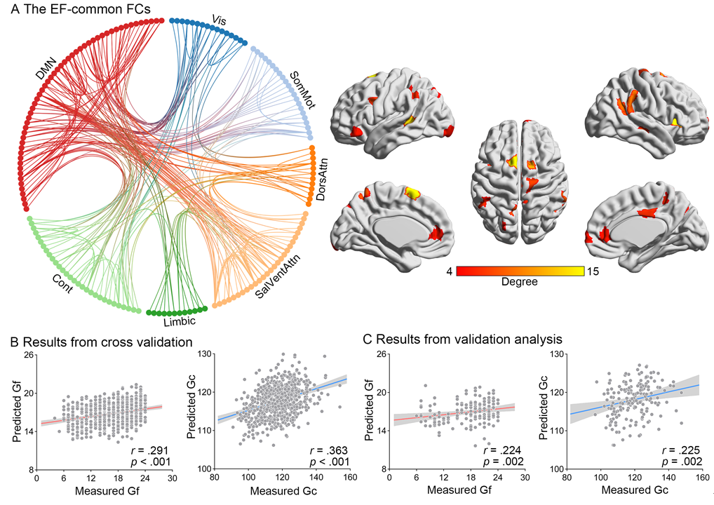 图2. EFs共同的功能连接及预测表现