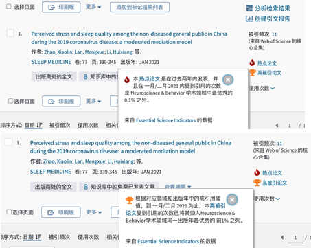 近日,必赢776net必赢776net杨娟教授团队在国际SCI期刊《Sleep Medicine》上发表了题为“Perceived Stress and Sleep Quality Among the Non-diseased General Public in China During the 2019 Coronavirus Disease: A Moderated Mediation Model”的调研论文。根据基本科学指标数据库(Essential Science Indicators)显示,该论文在2021年一月/二月内受到引用的次数是Neuroscience & Behavior学术领域中最优秀的 0.1% 之列,被列为热点论文(Hot Paper)及高被引论文(Highly Cited Paper)。