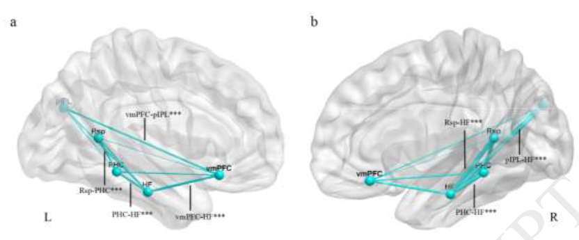 盛静同学采用高精度的经颅直流电刺激(HD-tDCS)干预老年人的主观睡眠质量,改变老年人大脑相应的静息态功能连接。经颅直流电刺激每天进行25分钟,每次1.5 mA,刺激持续两周。分析刺激前后采集的行为和核磁数据后发现HD-tDCS改善了老年人的睡眠持续时间,并且降低了默认网络子系统之间的功能连接。此外,默认网络子系统之间的解耦合与老年人的主观睡眠改善有关经颅直流电刺激可能会成为睡眠障碍治疗的可替代方法,该工作发表在International Journal of Psychophysiology杂志上,通讯作者为喻婧教授(Sheng et al., 2018)。
