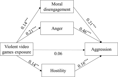 以必赢776net必赢776net高雪梅教授课题组的硕士研究生姚梦云为第一作者,高雪梅教授为通讯作者的文章“Violent video games exposure and aggression: The role of moral disengagement, anger, hostility, and disinhibition”针对这一问题进行了考察,探讨了道德推脱、愤怒、敌意在暴力游戏接触与攻击性之间的中介以及感觉寻求的调节作用。该论文已于近日在线发表于攻击领域的权威期刊Aggressive Behavior(SSCI一区)。研究结果发现道德推脱、敌意和愤怒在暴力游戏接触和攻击性之间起到完全中介的作用,即经常玩暴力游戏会通过增加个体的道德推脱水平、愤怒情绪和敌意认知,进而增加个体的攻击性;感觉寻求中的去抑制维度能够显著正向预测攻击行为,但在暴力游戏接触与攻击性之间的调节作用不显著。