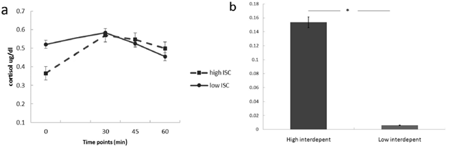 图1 客观生理指标上(清晨唾液皮质醇)反应出高互依自我构念个体日常应激水平更高