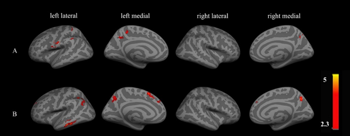 图3 停止信号任务中的大脑激活差异(健康的BMI组 >较高的BMI组)