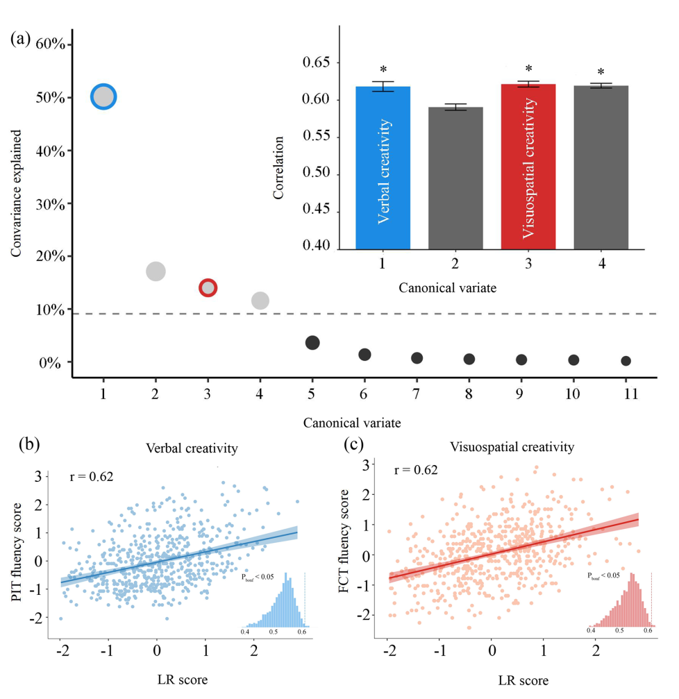 图1. SCCA揭示的创造性测量维度与LR之间的多变量模式