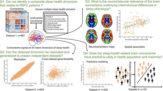 图2. 本研究使用了多种机器学习方法,从四大研究问题角度层层递进以最终确定睡眠健康的脑网络标志物
