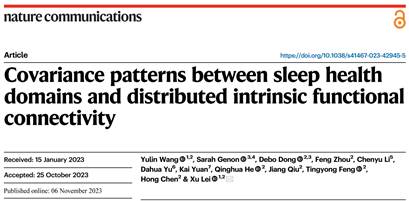 论文信息:Yulin Wang, Sarah Genon, Debo Dong, Feng Zhou, Chenyu Li, Dahua Yu, Kai Yuan, Qinghua He, Jiang Qiu, Tingyong Feng, Hong Chen, Xu Lei. Covariance patterns between sleep health domains and distributed intrinsic functional connectivity. Nature Communications. 2023 14: 7133. doi: 10.1038/s41467-023-42945-5.