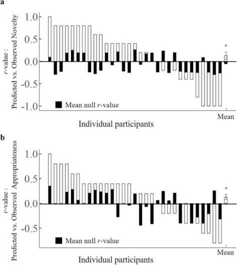 图2 预测新颖性和适宜性的一般线性模型的结果