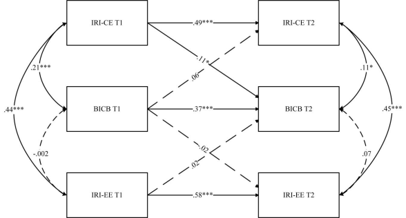 基于这一背景,必赢776net心理部邱江教授团队,在国际著名学术期刊《Journal of Personality》(中科院一区 top)上发表名为“Empathy to Creativity: the associations between empathy and everyday creativity”的学术论文。该论文通过两个研究,将共情的差异理论引入到日常创造力之中。研究一通过不同的参与者群体和测量方法,探讨了认知共情与情感共情与日常创造力和领域创造力之间的关系。研究结果发现,无论被试群体和测量工具如何,认知共情与日常创造力之间存在显著的正相关,而情感共情未能展现出显著的关联。这一结果同样适用于不同领域的创造力。研究二首先验证了研究一的结果,接着,基于创造性‘4C’理论,引入创造性成就,探讨了认知共情、情感共情与创造性成就的关系。结果表明,认知共情与创造性成就显著相关,尤其在视觉艺术、创意写作、发明、科学发现和烹饪艺术等领域,而情感共情与创造性成就无显著关系。最后,采用交叉滞后模型(CLPM)分析了认知共情、情感共情与日常创造力的方向性。研究发现,认知共情正向预测日常创造力,而情感共情未显示类似作用,日常创造力也不能预测认知共情和情感共情。这些结果强调了认知共情在推动创造力中的独特作用(见图1)。这一研究结果强调了培养共情能力,特别是认知共情,作为提高日常创造力和某些领域特定创造性成就的策略的重要性。在未来创新人才的选拔和培养过程中,应关注和训练个体的认知共情能力。