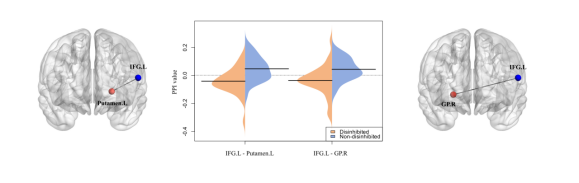 在神经机制分析方面,研究结合了两种脑连接方法:心理-生理交互作用分析(PPI)用于识别奖赏系统与抑制系统间的功能协同变化,动态因果模型(DCM)与参数经验贝叶斯(PEB)分析进一步建模关键脑区之间的因果调节路径和方向(图1)。